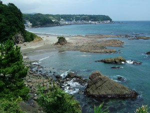 To find these secluded coves walk from Kawazu station towards the ocean, then to the left (in the direction of the tunnel) and you will pass through small forest and rocks; there from above you will see the rocks where you may stay nude, but first you will get down to huge sandy beach. And then just go a little backwards on the edge of the sea till you find the best spot for you.
