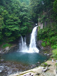 How about swimming in naturally hot springs – onsens – and then swap to the refreshing water in a waterfall all surrounded by dense subtropical forest? Not only onsens are naturally warm but also naturally rich in different minerals, which is often claimed to have healing and vitalizing forces. At least it is an incredibly pleasant experience to relax in warm water in natural conditions. But unfortunately the civilization is taking over and many onsens are sort of installed into hotels where you of course don’t really feel that it is all natural, and yet more rules are getting rather prude and by numerous requests many of such onsens now require swimming suits, though Japanese have a long tradition of nude bathing (often even in mixed gender groups) in onsens. But here, at Nanadaru Falls, you can experience onsens in relatively untouched state and in absolutely natural surroundings. Though still you should ask permission and pay to the local hotel where you may leave you clothes and other stuff, but probably you should better keep your swimming trunks until you are in the onsen. There are also cave-like onsens, but the highlight of them all is three open-air onsens with different temperature of water (from mild warm to hot) next to 30-meter high waterfalls! And this is only the first (and the highest) of seven (!) waterfalls on the river. It is a very romantic walkway along this forest river with statues illustrating a love-story of a Nobel Prize winning Japanese writer; you may go up to the last 22-meter high waterfall in the magnificent opening of the forest.