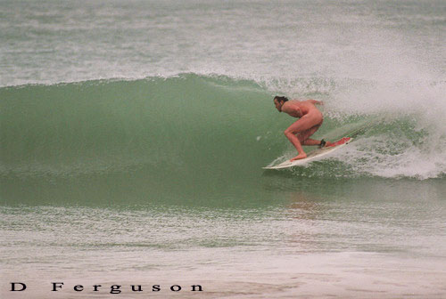 And this guy discovered a beach with waves providing an amazingly long ride all to himself, and he surely wanted to experience it naked!